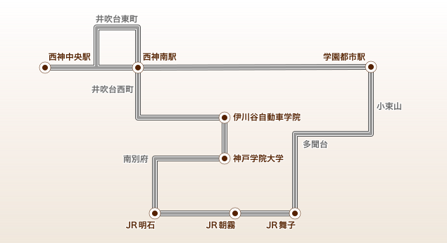 神戸市営地下鉄 西神・山手線「伊川谷駅」から神戸市バス58系統「伊川谷高校前」より徒歩約5分