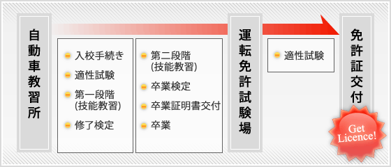 第一段階、第二段階での場内および路上の技能教習で学んだことを確認する総合的な技能の卒業検定です。これに合格すると、卒業証明書が交付され、自動車教習所を卒業です。運転免許試験場での適性試験に合格されますと免許証が交付されます。
